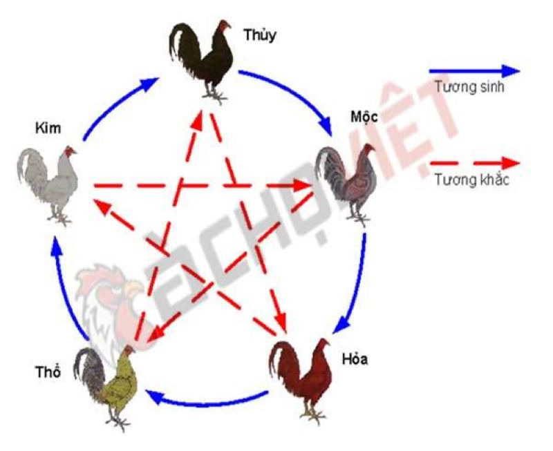 Quy luật tương khắc: Kim khắc Mộc, Mộc khắc Thổ, Thủy khắc Hỏa, Hỏa khắc Kim, Thổ khắc Thủy. Các Loại Gà Mào Bạn Nên Biết Khi Tổng Hợp Gà chọi.